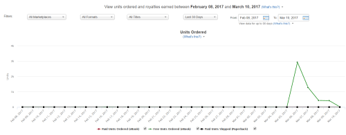 I’m not one to wish that every day was Christmas or my birthday, but I wouldn’t mind reliving the 6 March 2017 a few times. Well, 7 March, actually, because even though my BookBub promo was international, in Australia the email didn’t go out until 1am on 7 March. I spent the entire prior day checking the stats and telling myself to just calm the hell down, while worrying that something went wrong. I didn’t need to worry – when I woke up the next morning, I could see that long-awaited spike. Over 2,000 copies were already downloaded in those first six or so hours, and the green line keeps moving since. It has completely dwarfed my prior stats, which were in 5-10 per day range (without advertising). Isn’t it beautiful?